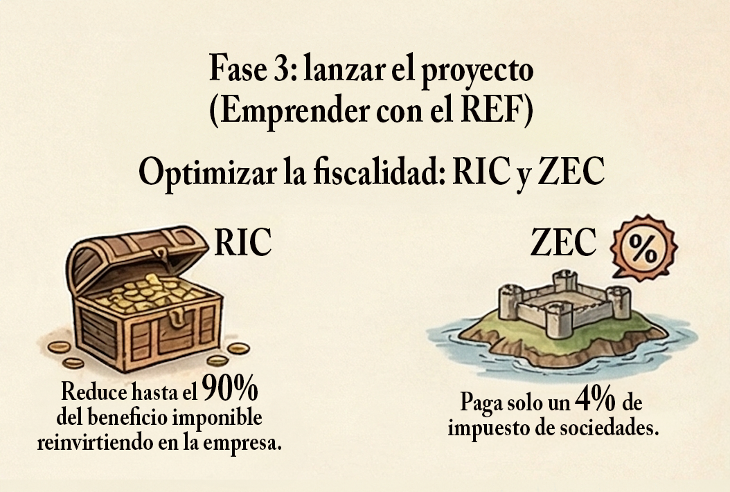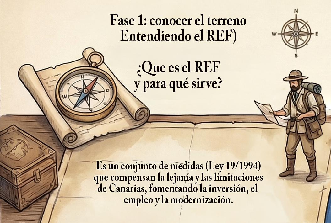 Antes de entrar en los contenidos, consulta la siguiente infografía. Recoge de un vistazo las tres fases que vas a trabajar en esta unidad: conocer el REF, idear proyectos vinculando el REF con la Agenda Canaria 2030 y emprender con el REF.